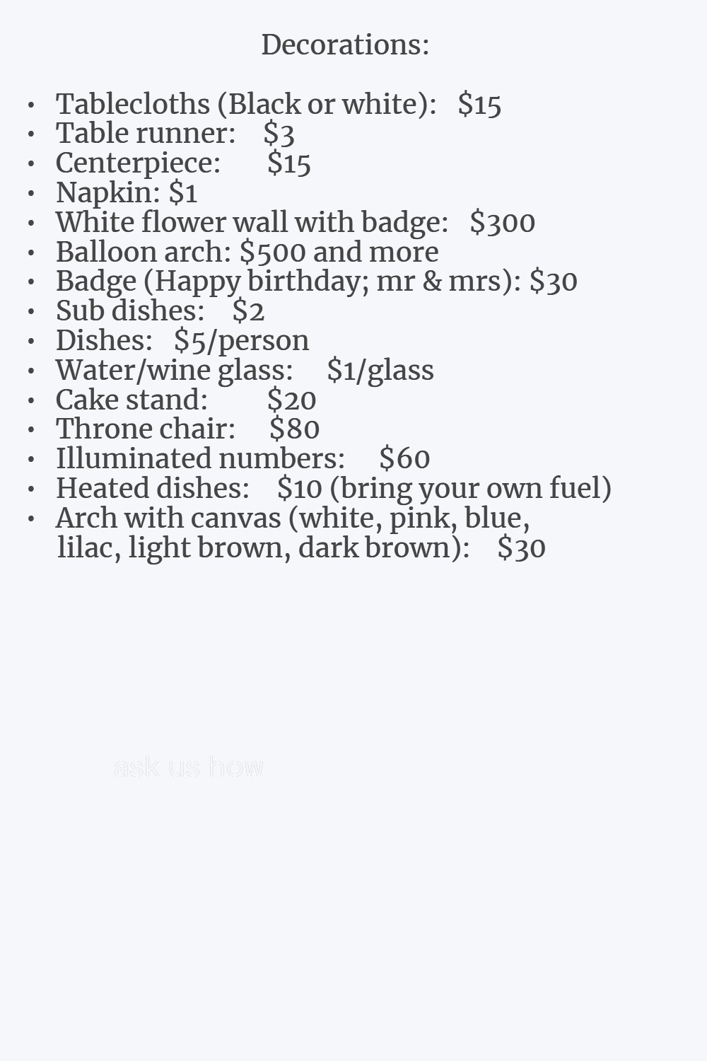 For 6 hours (setup and unsetup not included), Overtime (100$/h)